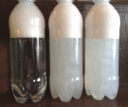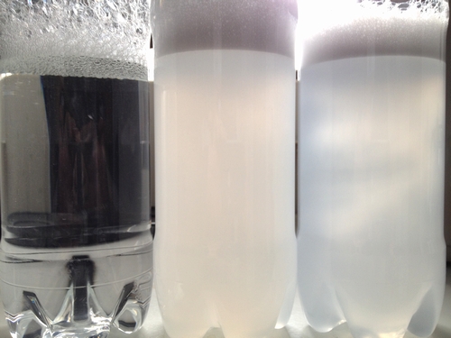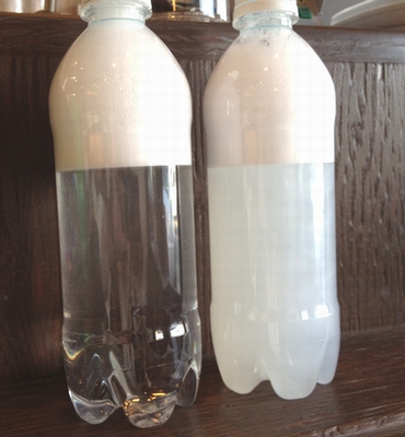 左の透明な方も、上に泡がたっているから、